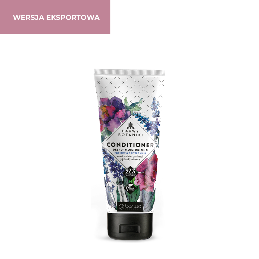 Nawilżająca odżywka Barwy Botaniki wygładza i przywraca włosom miękkość dzięki botanicznym składnikom i zbalansowanej formule PEH. Wersja exportowa.