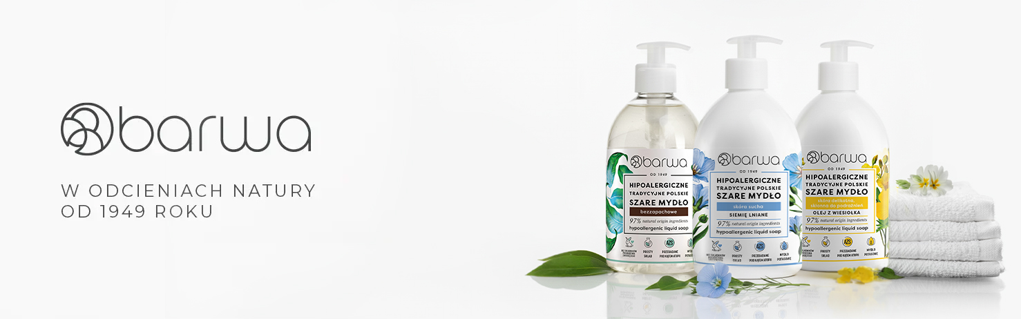 Barwa Cosmetics to firma założona w 1949 roku. Tworzymy różnorodne produkty na bazie bezpiecznych i przyjaznych skórze składników oraz receptur z jak największą zawartością składników pochodzenia naturalnego, na które każdy może sobie pozwolić. Jesteśmy ekspertami w produkcji naturalnych roślinnych mydeł w kostce. Ponadto tworzymy produkty do pielęgnacji włosów, ciała, twarzy, do skóry szczególnie wrażliwej oraz dla dzieci. W naszej ofercie znajdują się także kosmetyki do pielęgnacji domu oraz zwierząt.